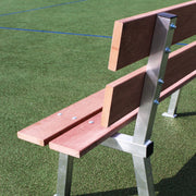 Bank 170cm in PET BRUIN. De banken zijn vervaardigd van aluminium kokers. De rug en de zitting zijn vervaardigd van PET planken. PET staat voor Polyethyleentereftalaat en in 100% recyclebaar, dus een mooi duurzaam alternatief voor uw vereniging.